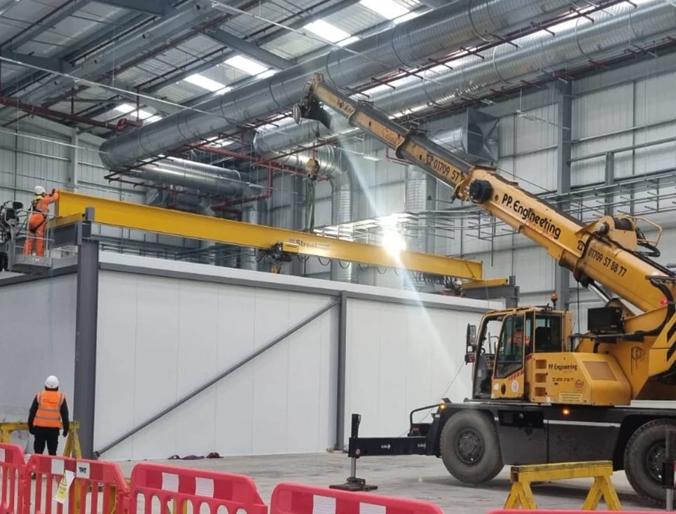 We were approached by our key customers principal contractor, who was overseeing the development of a new site facility in Sheffield. They had a requirement for a number of overhead cranes, including two 3.2t double girder cranes and a 2t single girder crane.